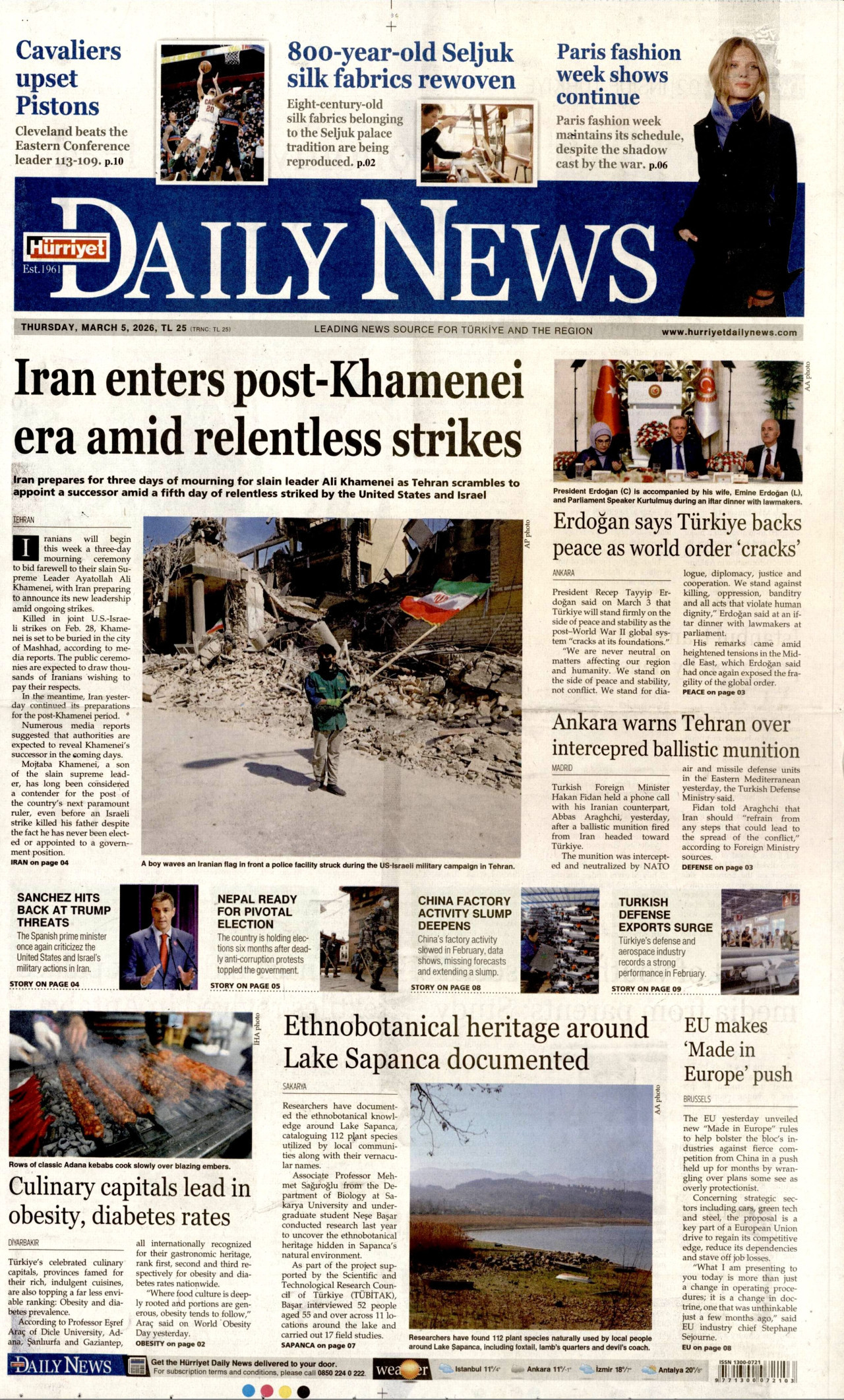HÜRRİYET DAİLY NEWS Gazetesi 05 Mart 2026, Perşembe Günü Manşeti